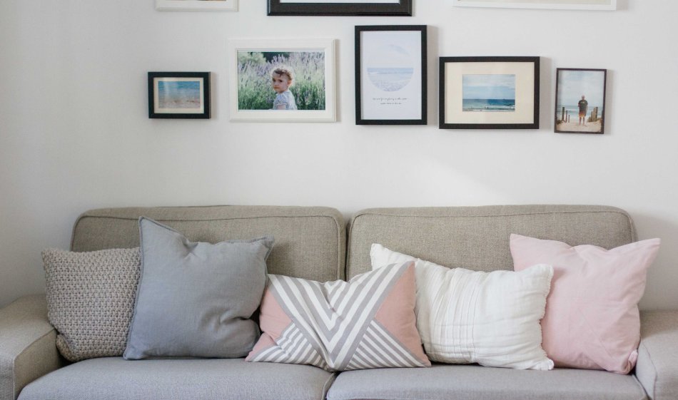 Das passte leider so überhaupt nicht zu den meisten anderen Sofakissen, die wir hatten. Aber die Farben fand ich so schön frisch und winterlich mit Vorfreude auf Frühling, dass ich das Kissen als Farbvorlage nahm und die restlichen Kissen durch neue Kissenbezüge in grau, weiß und rosé ausgetauscht habe. Fündig wurde ich vor allem bei H&M Home und Zara Home. Bei beiden gibt es momentan eine große Auswahl in eben diesen Farben zu vernünftigen Preisen. Und auch die Materialien sind toll: Leinen, Strick und Samt. Passt sehr schön zusammen, finde ich. Die großen weißen Kissen sind vom Schweden und waren bereits in meinem Besitz. Das Kissen von OYOY ist aus meinem Lieblingsladen hier in Wiesbaden. Ähnliche habe ich aber auch online zum Beispiel hier und hier gesehen.