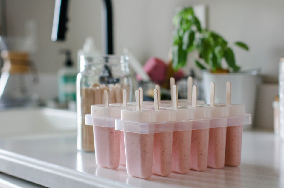 Einfach alles miteinander pürieren und in die Eisförmchen geben. Stäbchen rein und für mindestens vier Stunden in die Tiefkühltruhe stellen. Fertig!