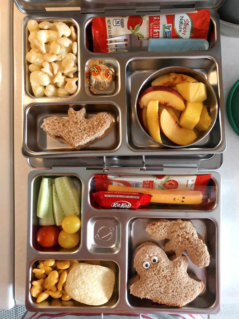 Ich habe letzte Woche spontan diese Ausstecher mitgenommen und ahnte nicht, wie viel Spaß es machen würde, die Lunch-Brote der Kinder in Kürbis-, Gespenst- oder Fledermausform auszustechen!