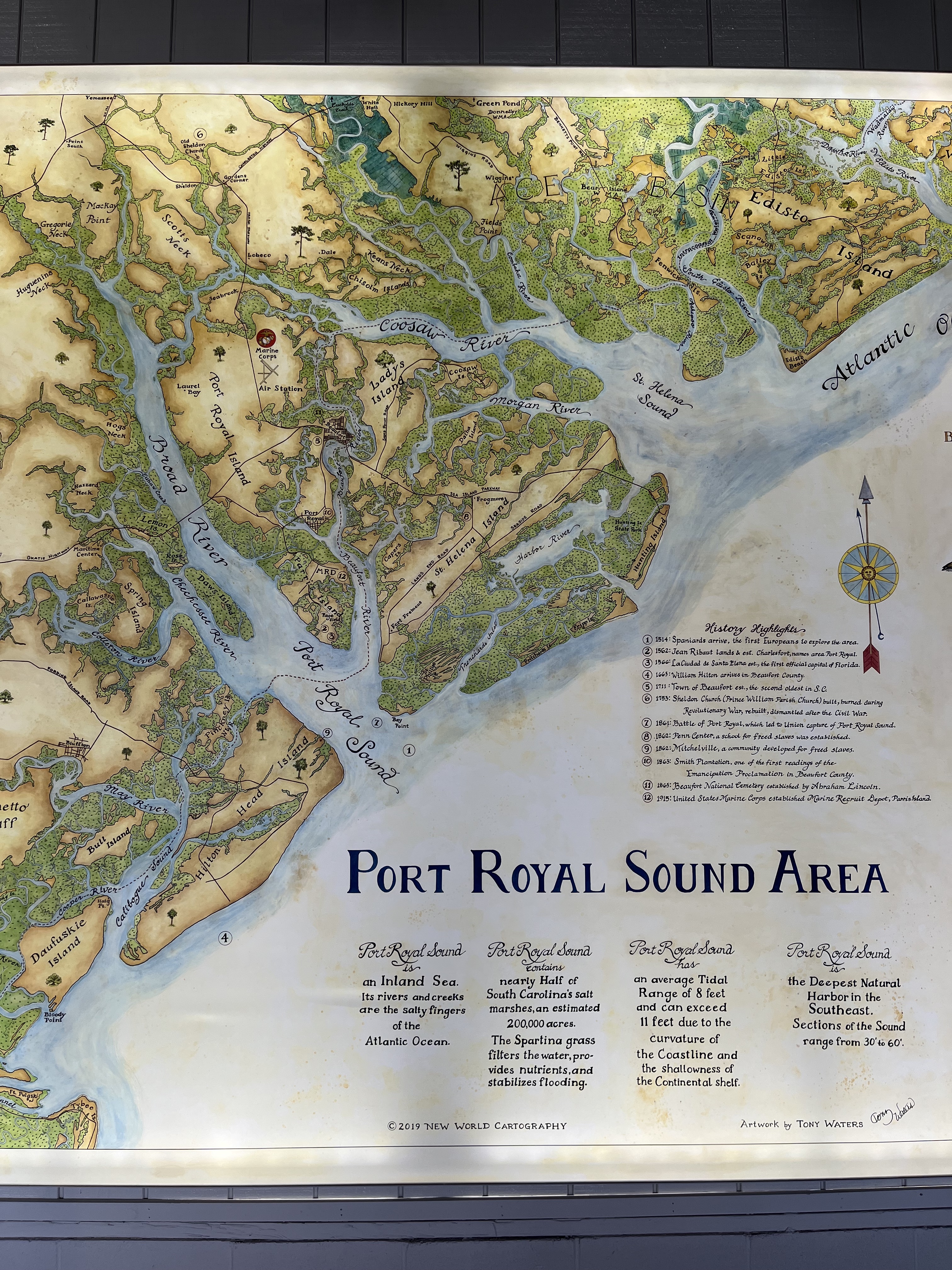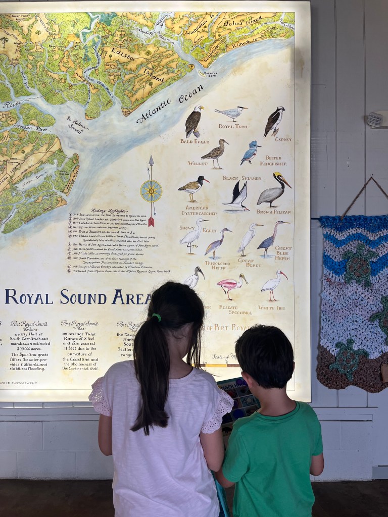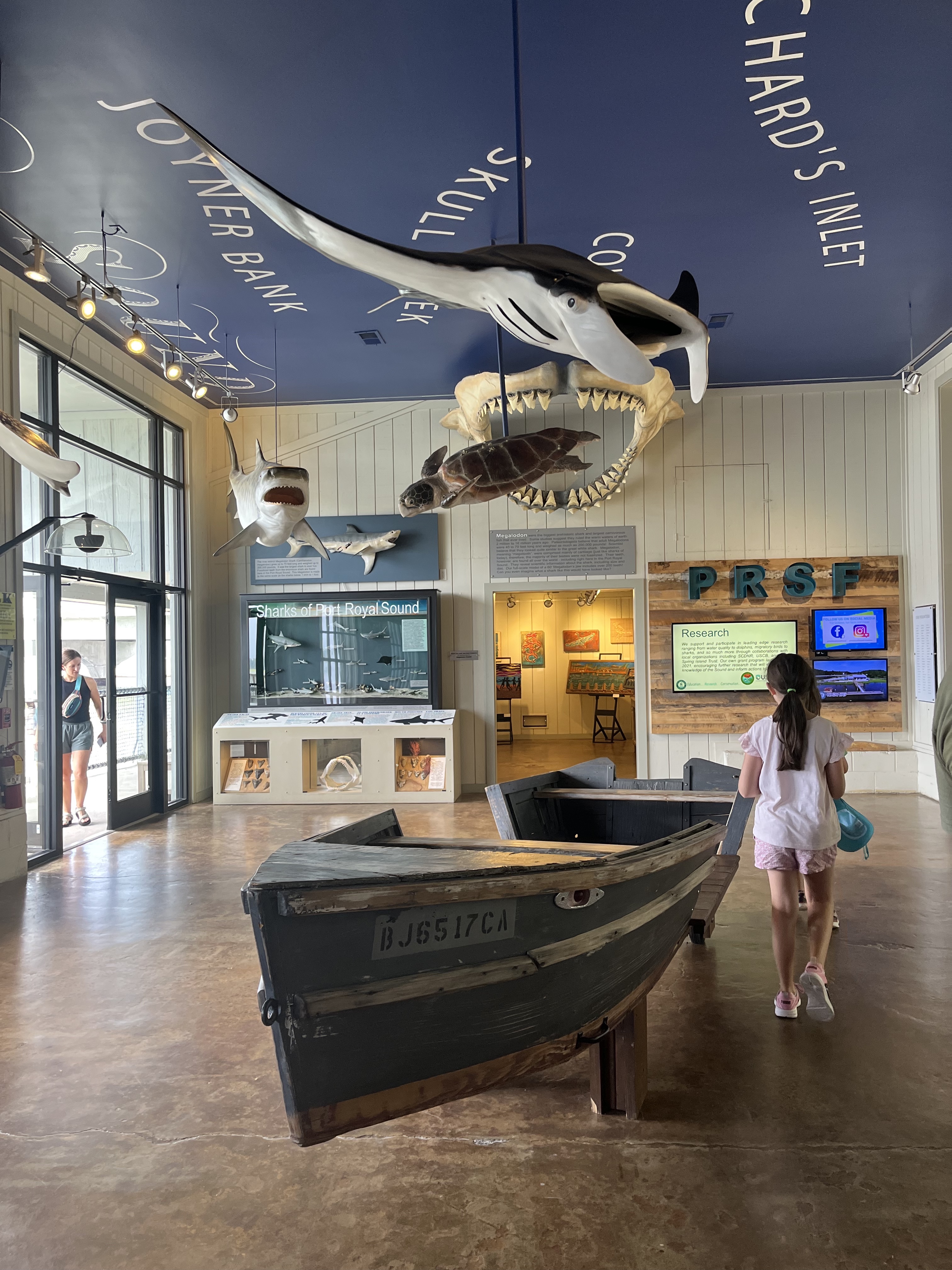 Das Maritime Center in Port Royal Sound liegt sozusagen auf dem Heimweg. Als wir ankamen, hatte das Center zwar nur noch eine Stunde geöffnet, aber es hat sich trotzdem gelohnt. Es kostet keinen Eintritt, es gab einen Scavenger Hunt für die Kinder (den sie mit Begeisterung gemacht haben!) und wir haben die Aussicht aufs Marsch genossen und nach Delfinen Ausschau gehalten.