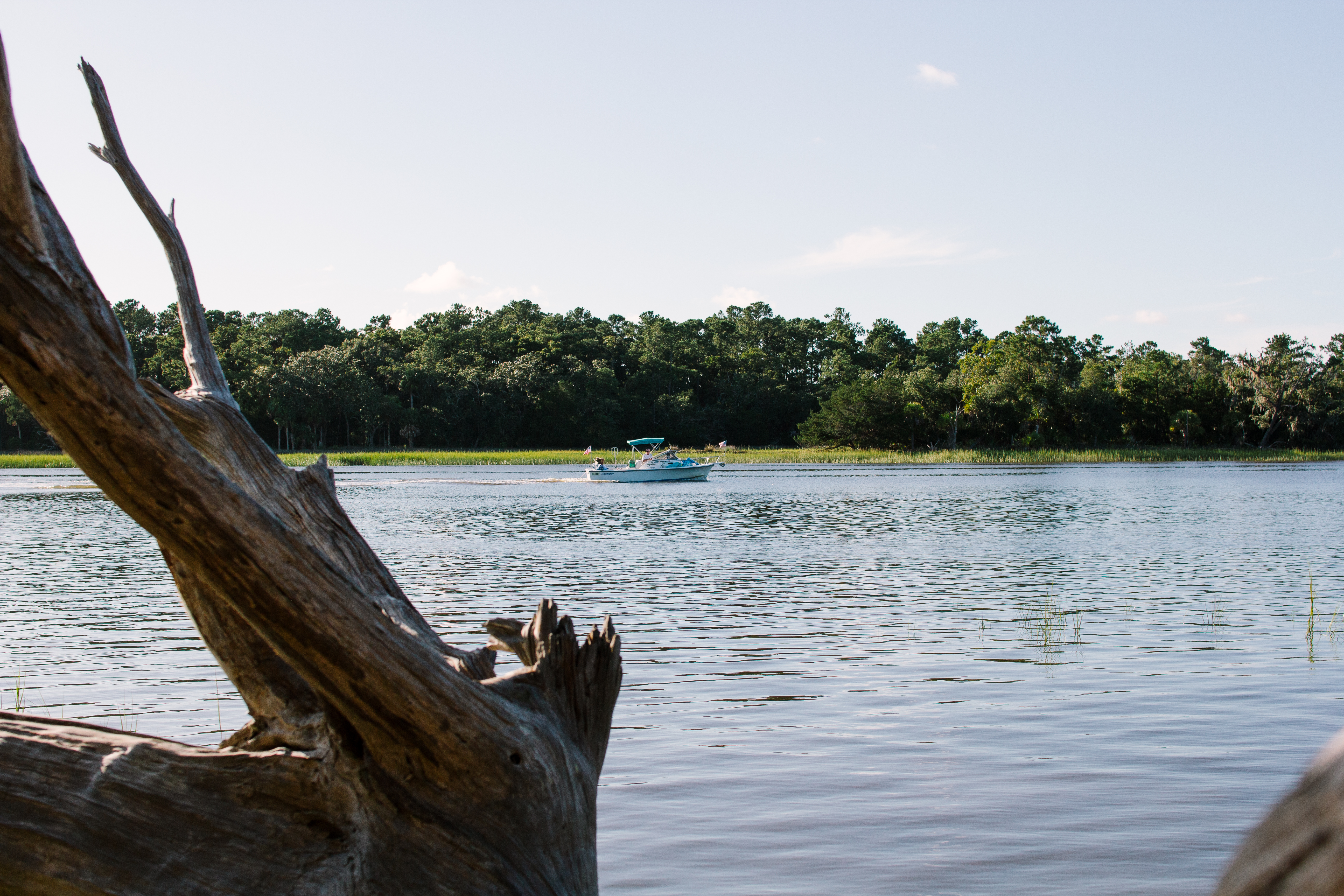 Die Palmen und Bäume, das spanische Moos. Die Wasserwege und Sumpfgebiete. Die Tiere! Man sieht Reiher, Krabben, manchmal sogar Weißkopfseeadler und eigentlich immer: Delfine! Man muss vielleicht ein kleines bisschen Geduld mitbringen – aber bei dieser Aussicht könnte ich Stunden aufs Wasser schauen und auf Delfine warten.