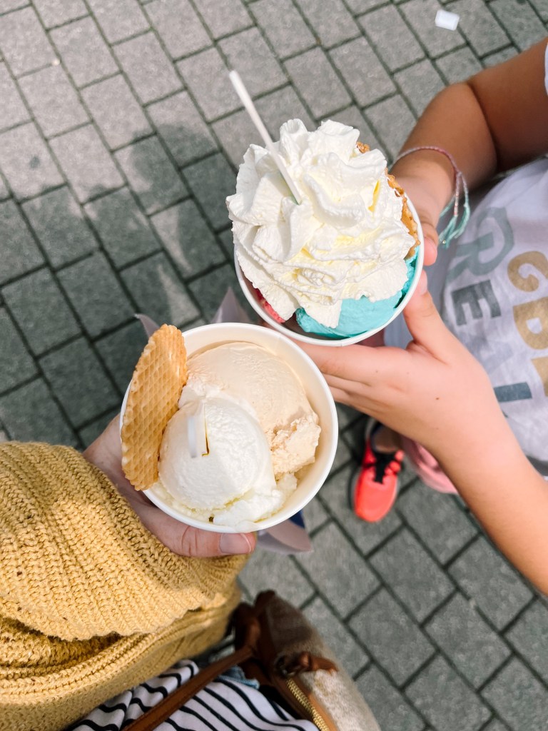 Was wir genossen haben: Mit dem Bus oder zu Fuß in die Stadt zu können. Das ist etwas, was hier in den USA eher nicht so selbstverständlich ist. Man braucht eigentlich für alles ein Auto. Egal, wo wir in Deutschland unterwegs waren, wir konnten eigentlich immer alles zu Fuß oder mit öffentlichen Verkehrsmitteln erreichen. Ein Highlight für Kathleen war auf jeden Fall, allein mit ihrer Freundin in die Stadt zu gehen und Eis zu essen 🙂 Ein Stück Selbständigkeit, das uns hier in den USA manchmal fehlt.