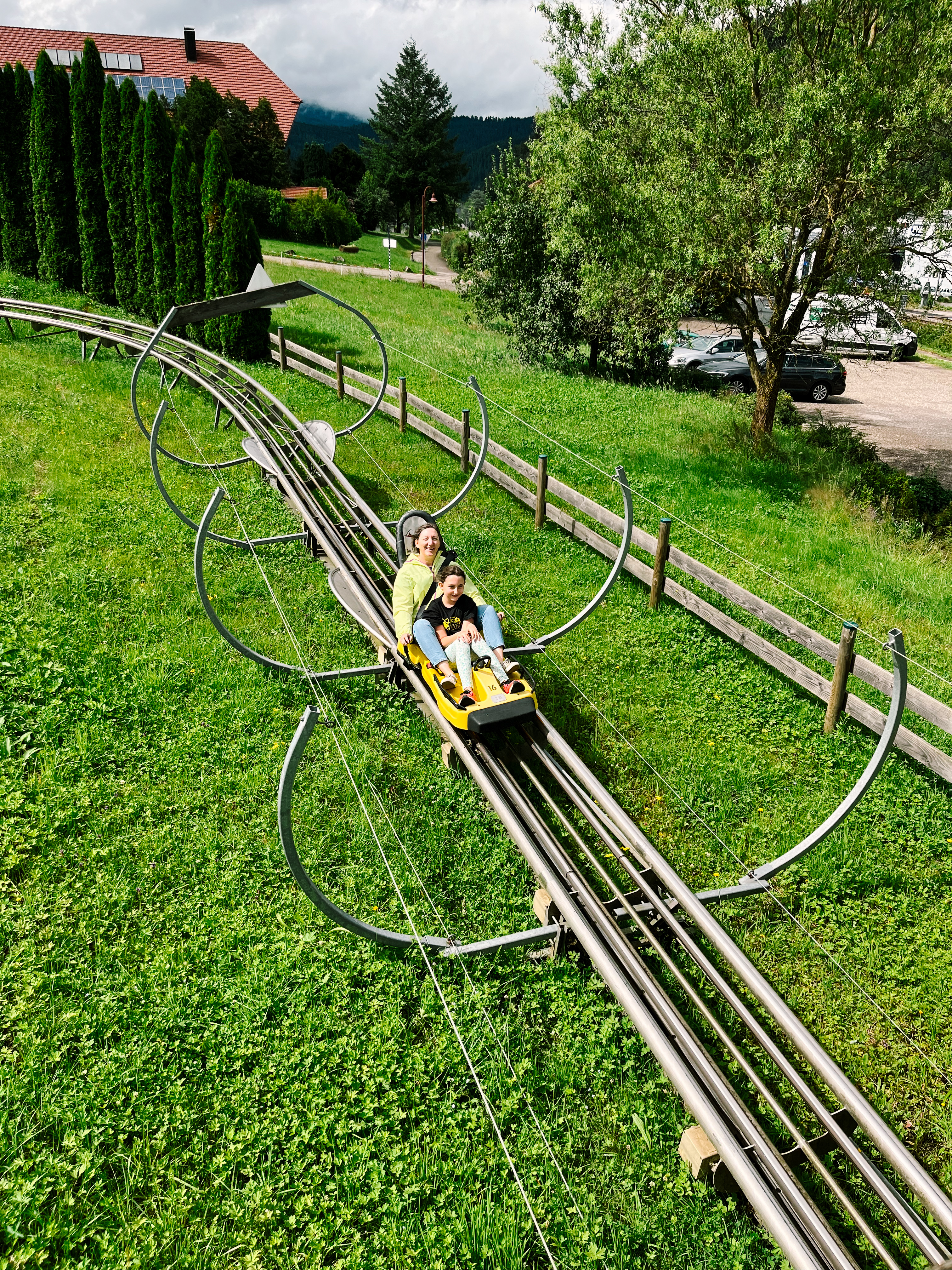 Was wir getragen haben: Mehr lange Klamotten als gedacht, haha. Das Wetter war relativ durchwachsen, als wir in Deutschland waren. Dafür war es SO GRÜN! Auf der Sommerrodelbahn wurden wir ziemlich nass – Spaß hatten wir trotzdem. Und für die wichtigen Ereignisse hat das Wetter mitgespielt – das ist ja die Hauptsache.